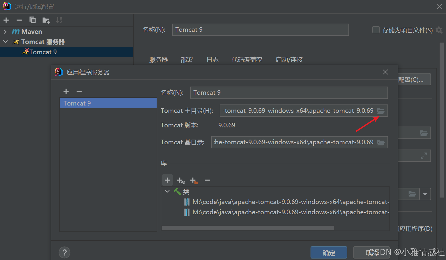 名称任意,点击配置,选择你下载的tomcat所在的位置