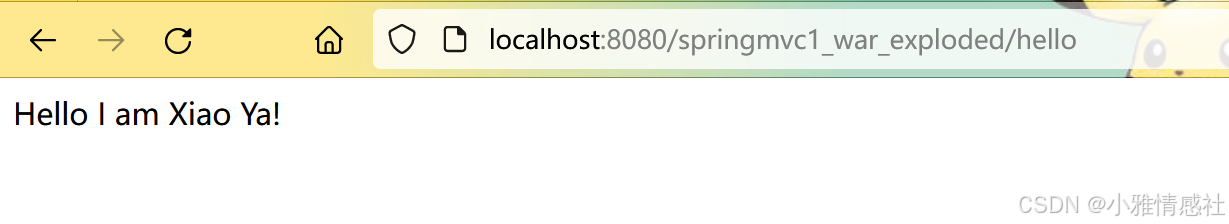如果没改上下文路径的话访问 http://127.0.0.1:8080/springmvc1_war_exploded/hello 即可看到回显字符串,就不演示了。