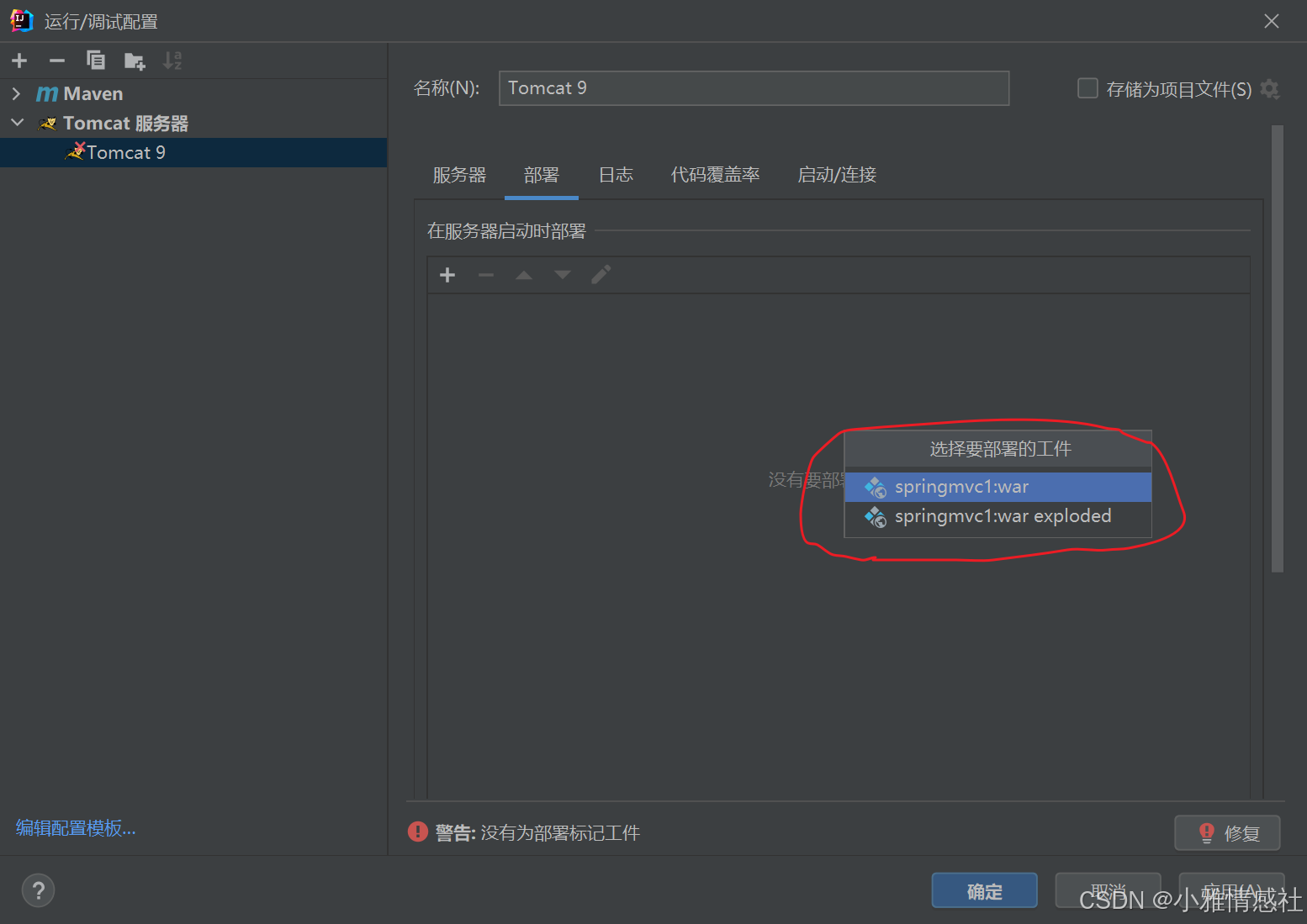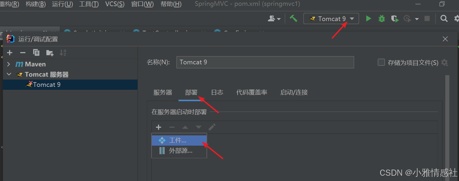 然后我们重新配置tomcat,点到部署,点击+按钮,选择工件即可。