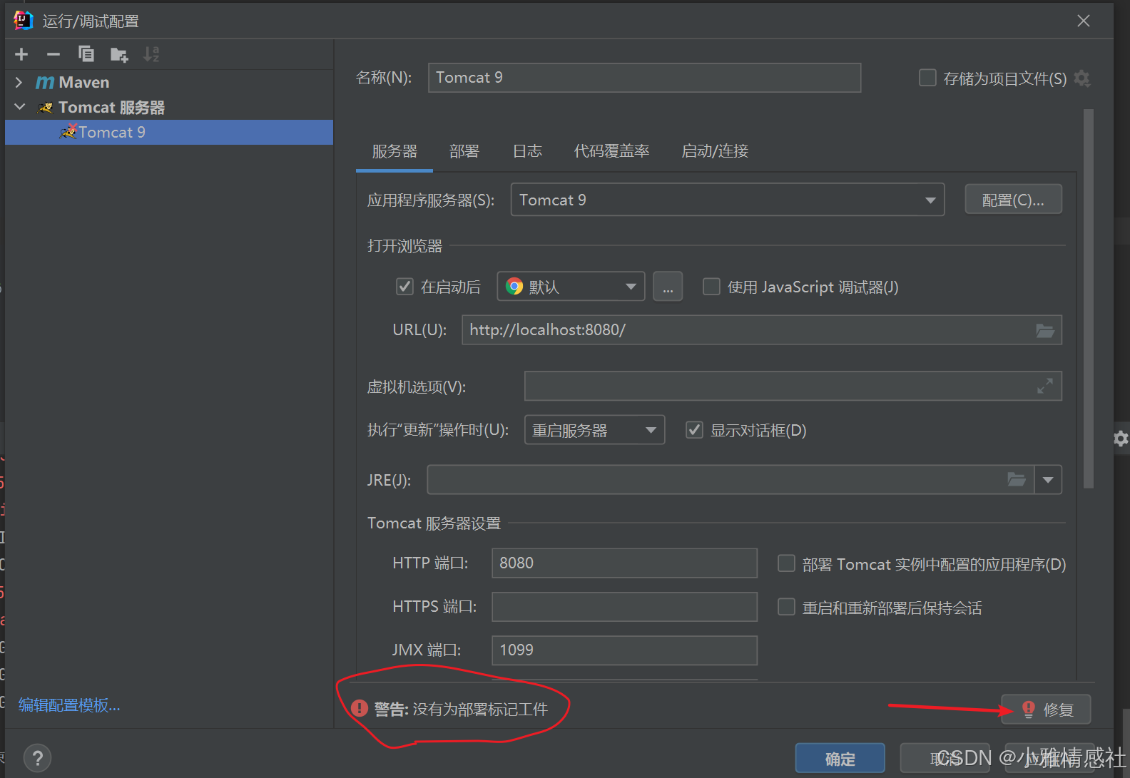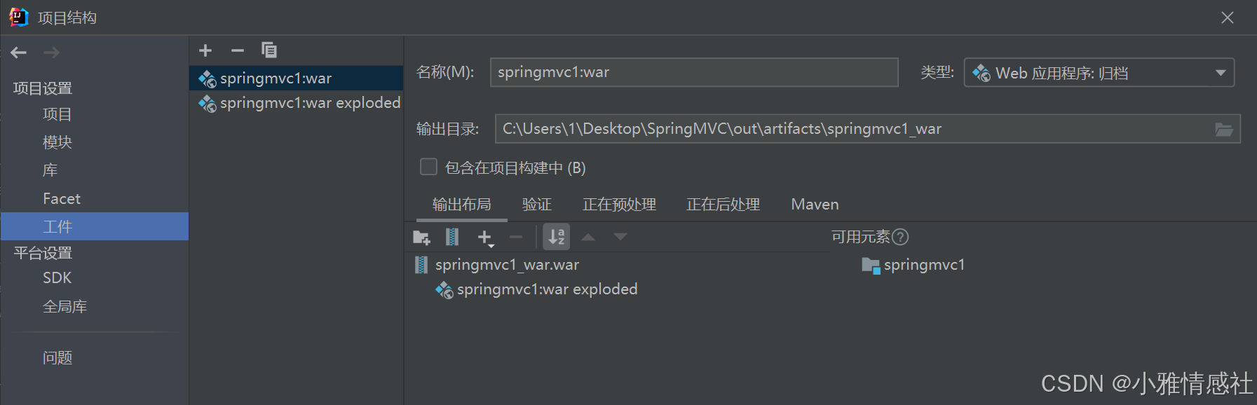 点击修复的时候之所以有那两个工件那是因为我们前面已经通过maven生成好了,如果先用这个方法的话是没有工件的,那我们也可以点击文件--项目结构