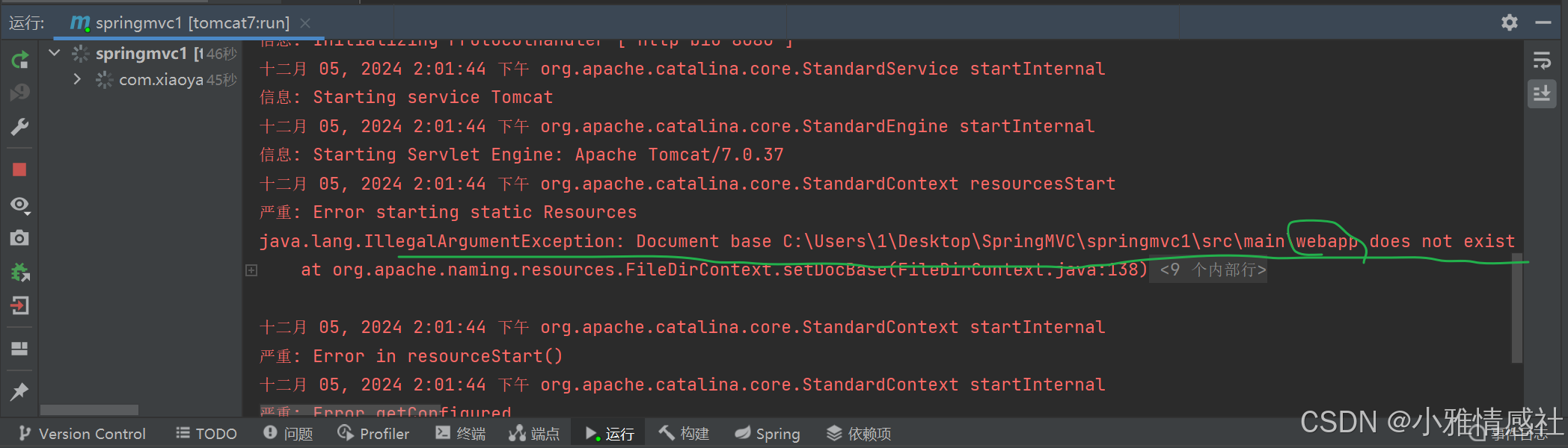 如果不出意外的话应该要出意外了,在运行的过程中提示main目录下不存在webapp目录