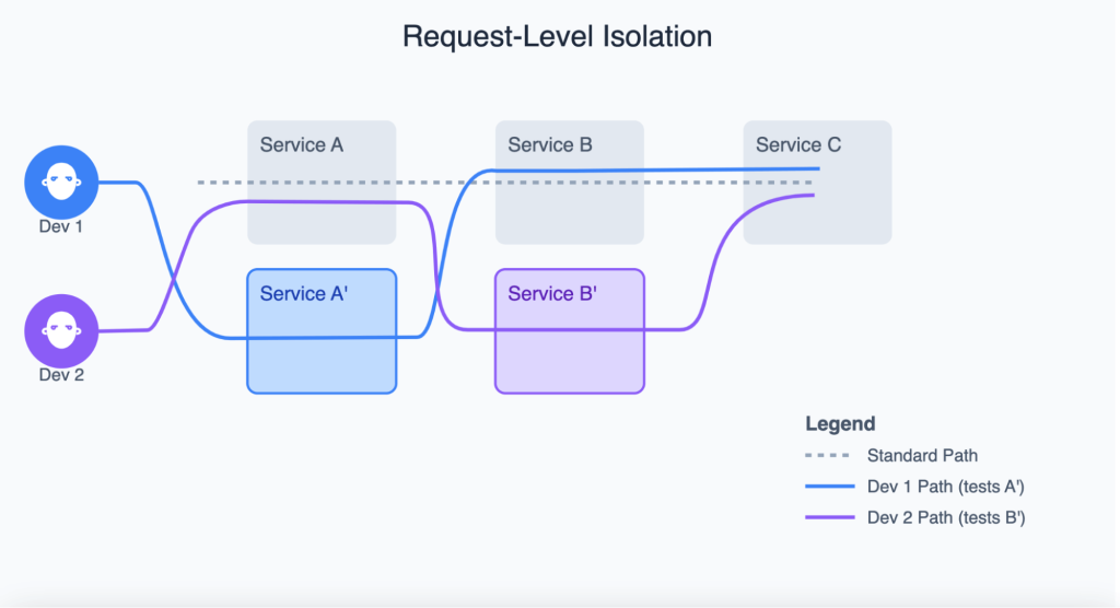 像Uber、Lyft 和 DoorDash 等领先科技公司已经开创了一种不同的方法。他们没有复制整个环境,而是转向了一种在共享环境中隔离请求的模型。这种根本性的转变带来了几个关键优势: