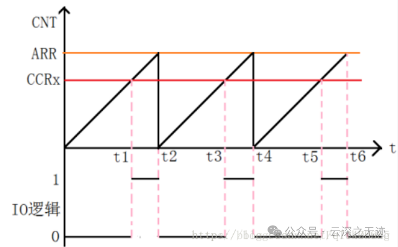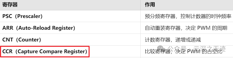 定时器有一个比较寄存器(CCR),用来设定高电平持续时间(Ton):