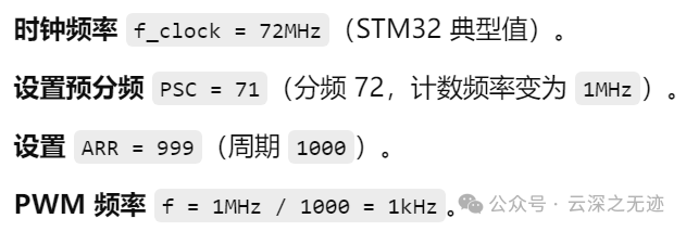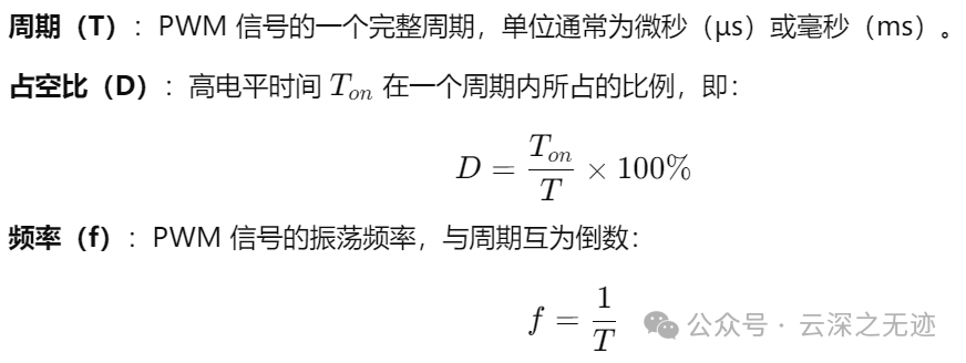 PWM(脉冲宽度调制)信号的本质是一个占空比可调的矩形波,它通常由定时器(Timer) 通过计数和比较匹配的方式生成。