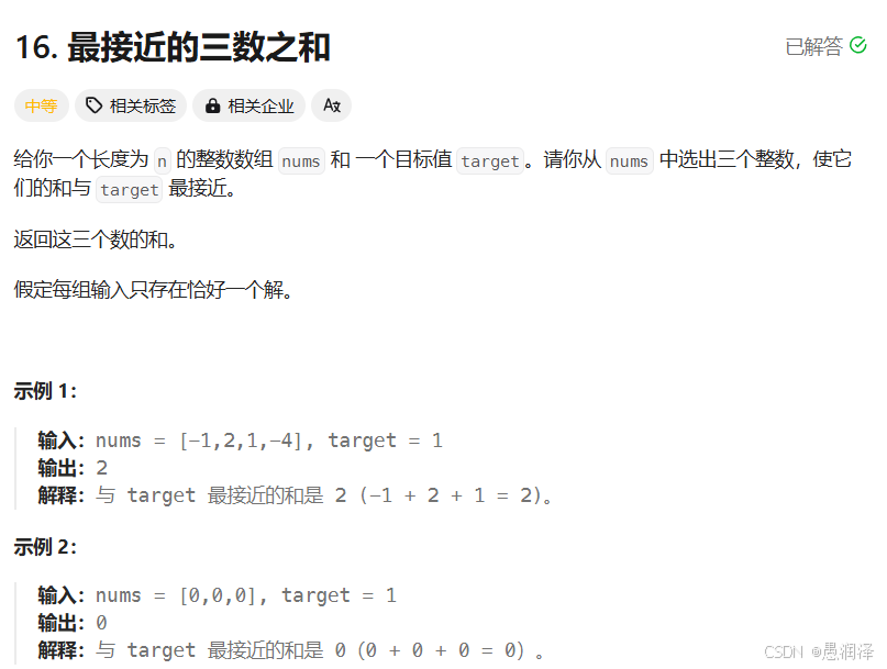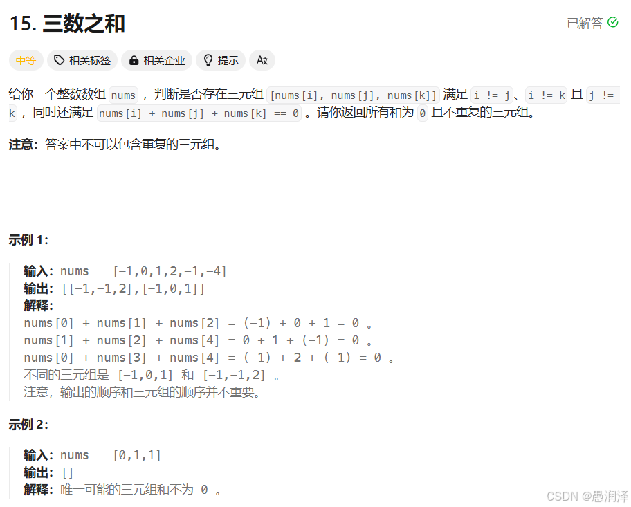 return ans首先,双指针问题本质上就是一个“条件判定值”的问题,三数问题本质上其实就是一个将二数问题的判定值挪为我们所选的定点i的值的过程。