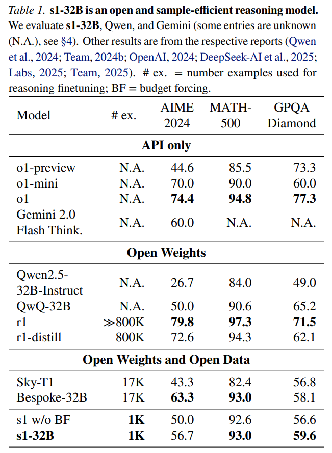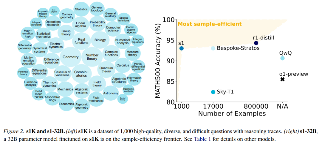 样本效率。图 2(右)和表 1 将 s1-32B 与其他模型进行了比较。