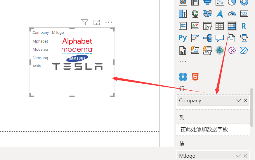 把公司名称放入矩阵行,logo放入值(标记为图像URL),得到以下效果: