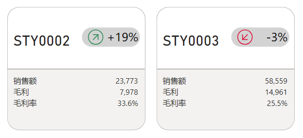 这里的增长率+箭头使用了SVG图像,但是读者不需要了解SVG知识也可实现。我提供了专用工具,参考《Power BI 万能富标签生成器》