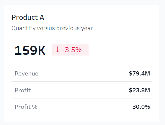 我没使用过tableau,但是不妨碍经常浏览下tableau的案例库(分享五个可视化分析案例库),借鉴到Power BI。最近看到一个产品卡片效果,Power BI使用新卡片图视觉对象也可以设计类似的结构。