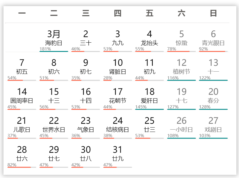 加上SVG条件格式图标可以存放农历、假日等信息: