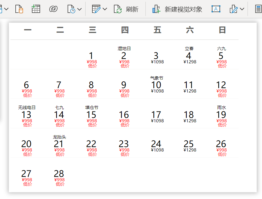 《Power BI 模拟携程酒店价格日历》日期、节日、价格在同一个格子: