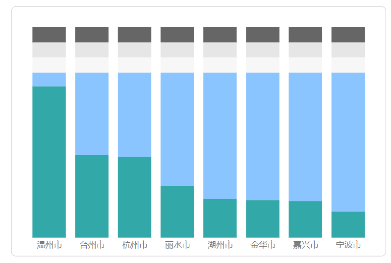 对柱形颜色进行处理,将空位填平柱形设置为和背景色相同(此处为白色),箭头和增长标签设置为相同颜色(此处为灰色)。