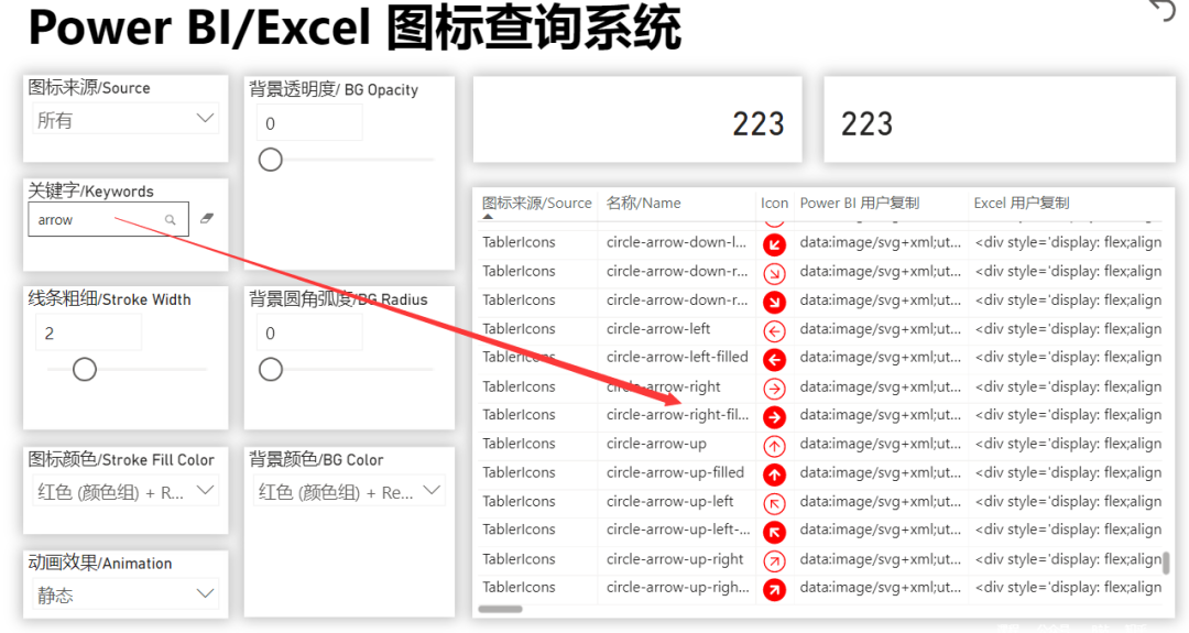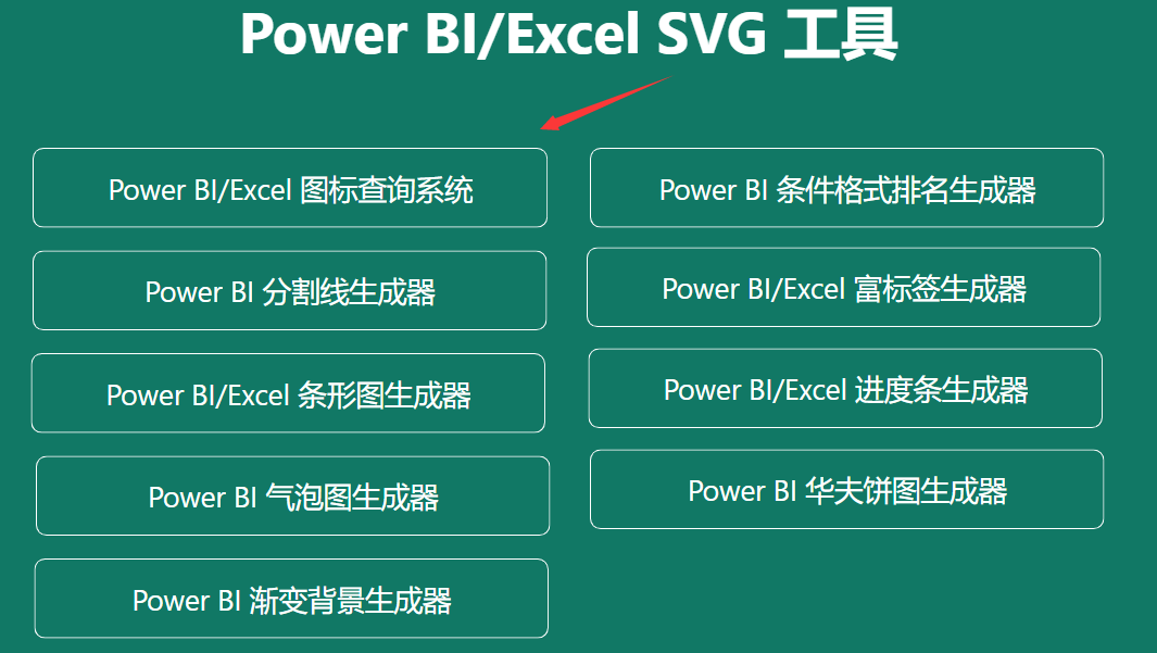 Power BI内置的条件格式图标有箭头,但是很丑。借助SVG我们可以进行美化。再次打开我分享的Power BI SVG在线工具,选择图标查询系统: