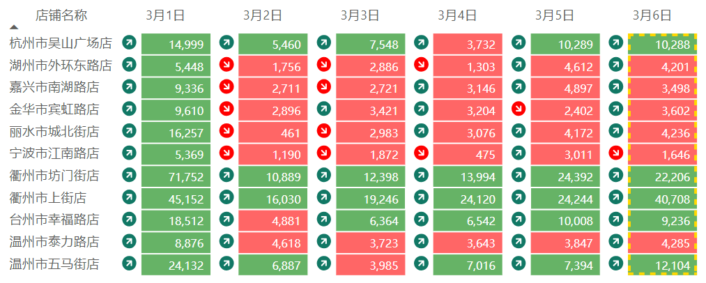 将上方的SVG度量值施加到矩阵指标的条件格式图标,得到: