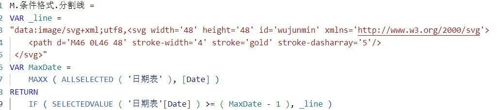 上图两条黄色虚线把最大日期单独划分出来。这里线条使用SVG绘制,借助我分享的Power BI SVG在线工具,读者并不需要了解SVG代码知识也可以实现。打开工具: