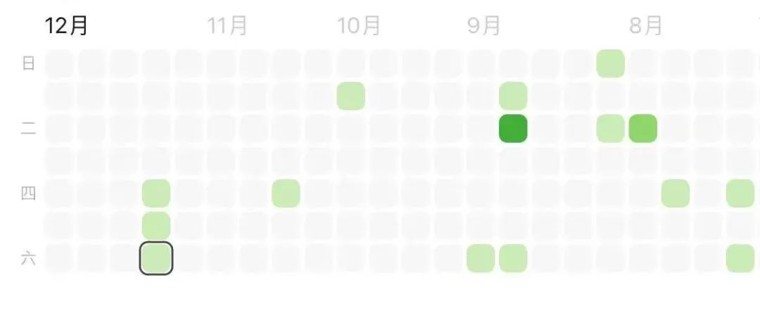 这是Flomo(一款笔记服务)的笔记记录热力图: