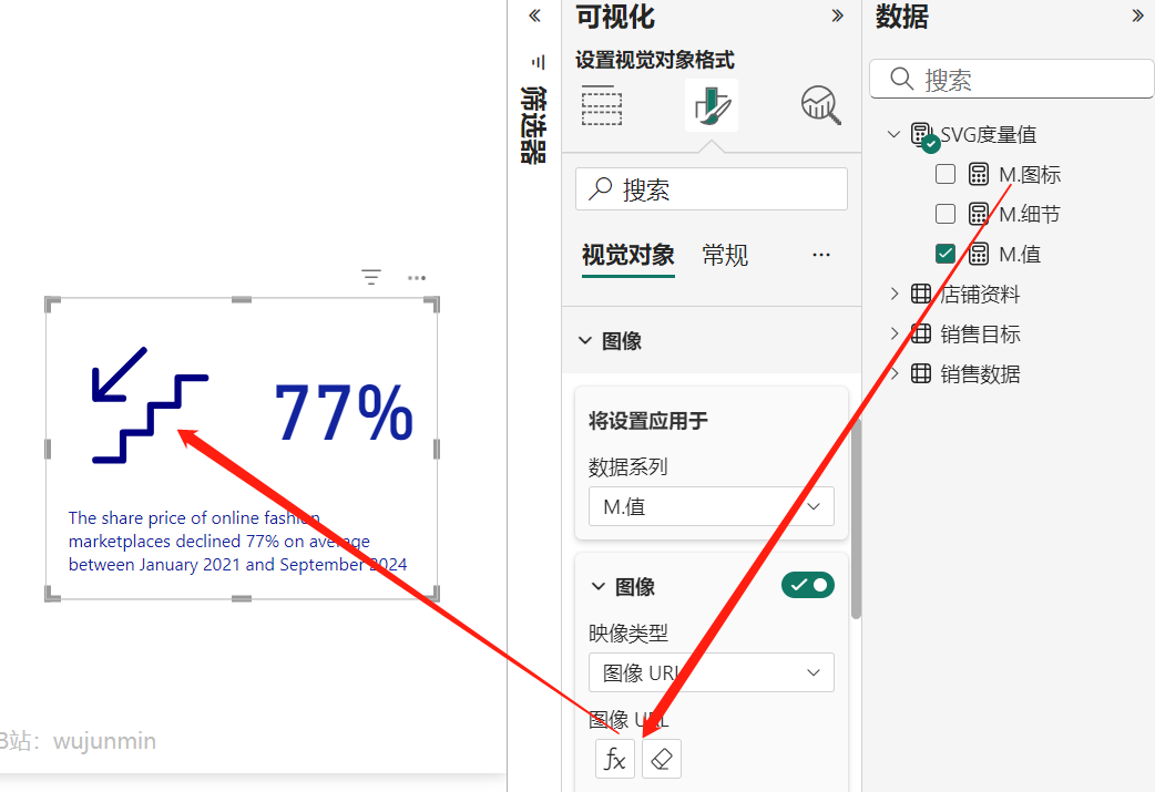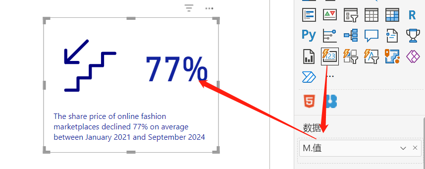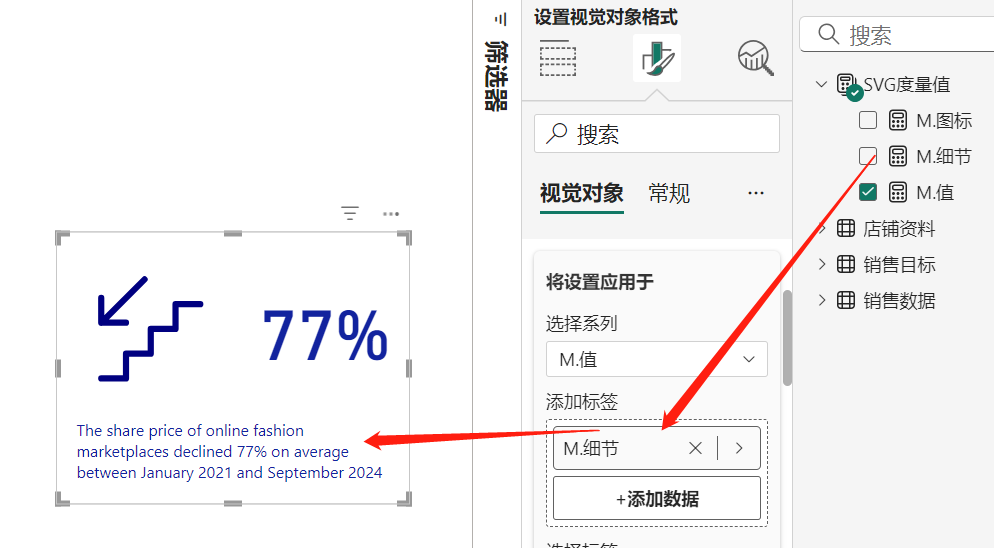 将[M.值]度量值放到新卡片图的”数据“区域: