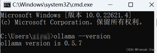 如果显示Ollama版本号,说明安装成功(如图4所示)。
