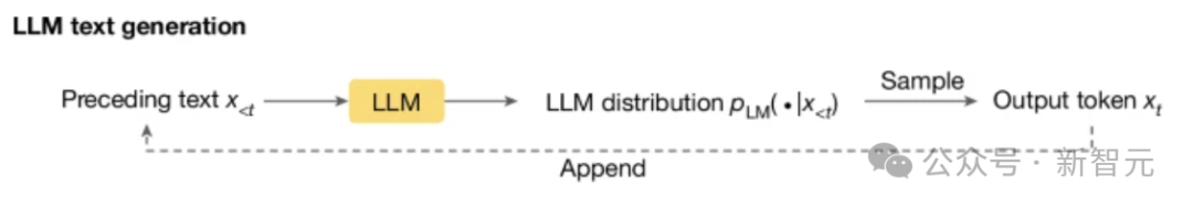 下图是标准的LLM生成过程:根据之前的token计算当前时刻token的概率分布,然后采样输出next token。