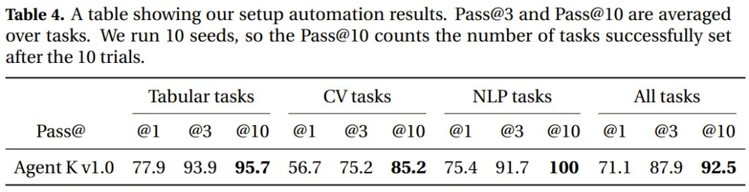 Agent K 表现如何?终究还需看实验结果。该团队严格测试了 Agent K v1.0(基础模型使用了 Qwen-2.5 72B)实现完全自动化的能力以及性能。