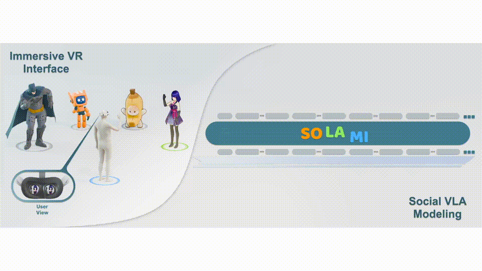 研究人员在这篇工作中,提出了一个Social VLA的端到端建模3D数字角色的技术框架,一种从现有不完备模态的数据合成多模态社交互动数据的管线,和一个支持用户和角色进行沉浸式互动的VR交互系统。