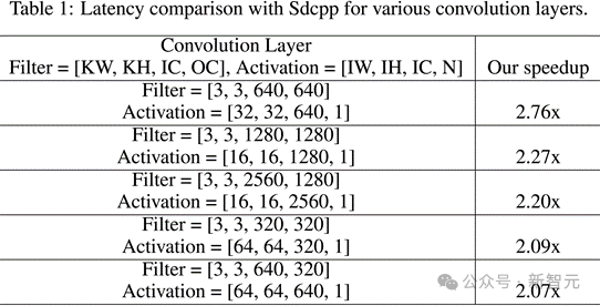 单卷积层的加速表现:对于多种卷积层配置,推理速度平均提升超过2倍!