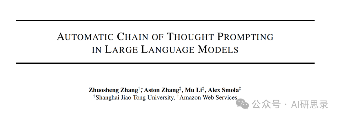 论文题目:AUTOMATIC CHAIN OF THOUGHT PROMPTING IN LARGE LANGUAGE MODELS