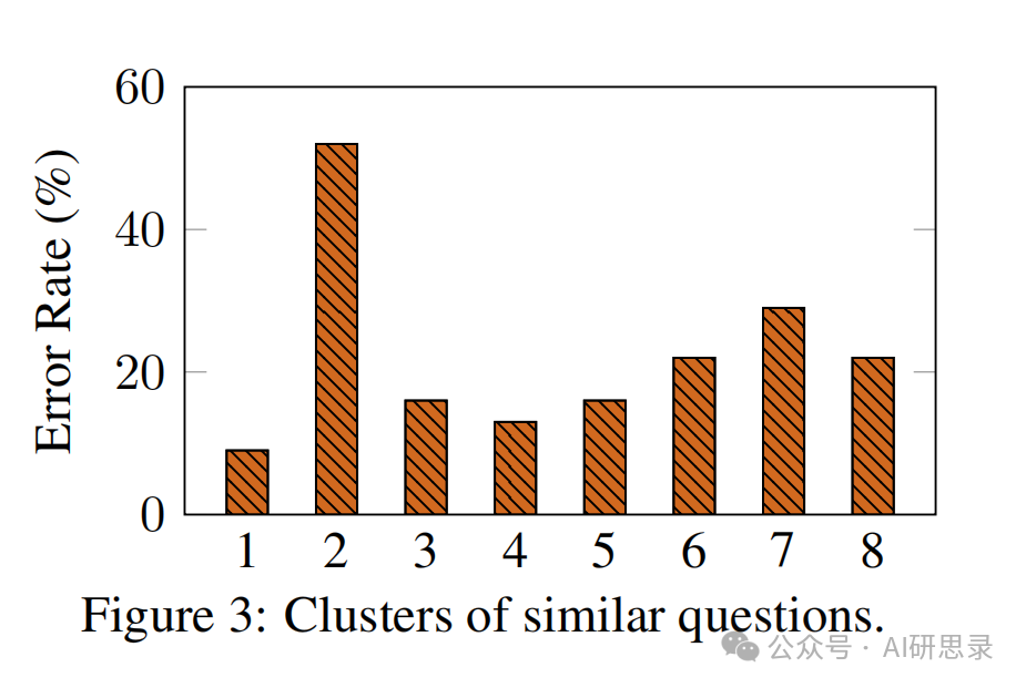 假设所有错误演示的问题都属于同一个高频错误簇,则从每个不同的簇中抽样一个问题。由于不同的簇反映了问题语义的多样性,这种基于聚类的抽样方法可以被视为基于多样性的。