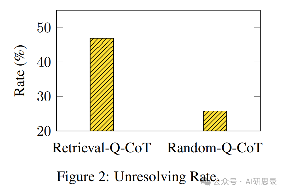 相比之下,Random-Q-CoT由于其随机抽样的特性,能够避免因相似性而导致的错误复制,从而表现出更低的未解决率1。