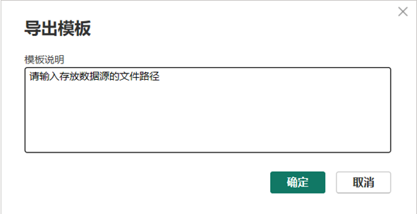 STEP 5 设计好报告后,点击菜单栏文件中的另存为(或者导出)PowerBI模板.pbit文件,输入适当的提示信息(用户打开模板文件的时候可以看到,比如“请输入存放数据源的文件路径”),点击确定。