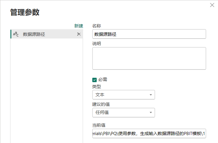 STEP 2 输入参数名称,类型选择文本,当前值输入当前的数据源路径,这里以本地文件夹为例,直接在文件浏览器中地址栏复制路径即可。