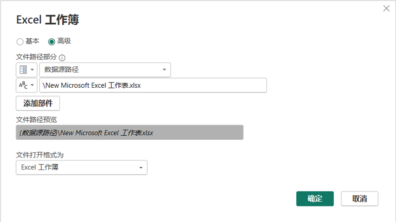 STEP 4 在查询设置窗格点击源对应的齿轮,在跳出的对话框中选择高级,将地址中的最后一个斜杠和文件名称剪切到第二行,第一行切换为参数,参数用上一步生成的数据源地址参数,点击确定,然后关闭并应用。