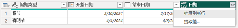 将使用开始日期和结束日期的假期表转换为带日期列的一维表。