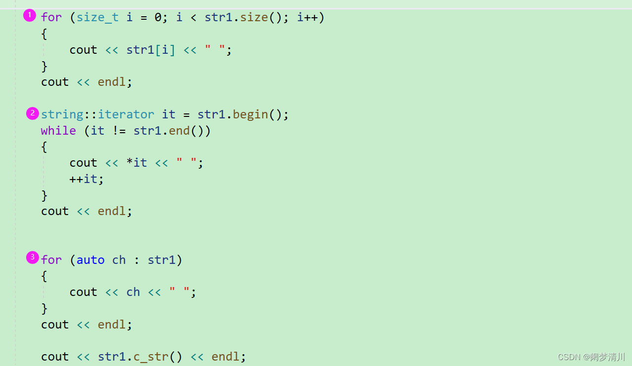 第一种就是最直接的通过循环的方式进行遍历,第二种就是迭代器的方式,第三种就是通过范围for的方式,其实这个范围for的本质就是这个迭代器,迭代器在大部分的情况下面就是一个指针变量,实际上这个通过范围for进行打印就是转换为迭代器进行打印的;