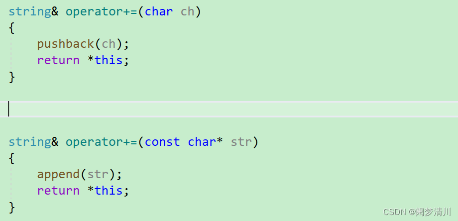 下面的这个就是对于+=运算符的重载,我们在尾插入字符串更新size的时候就是用了这个运算符;