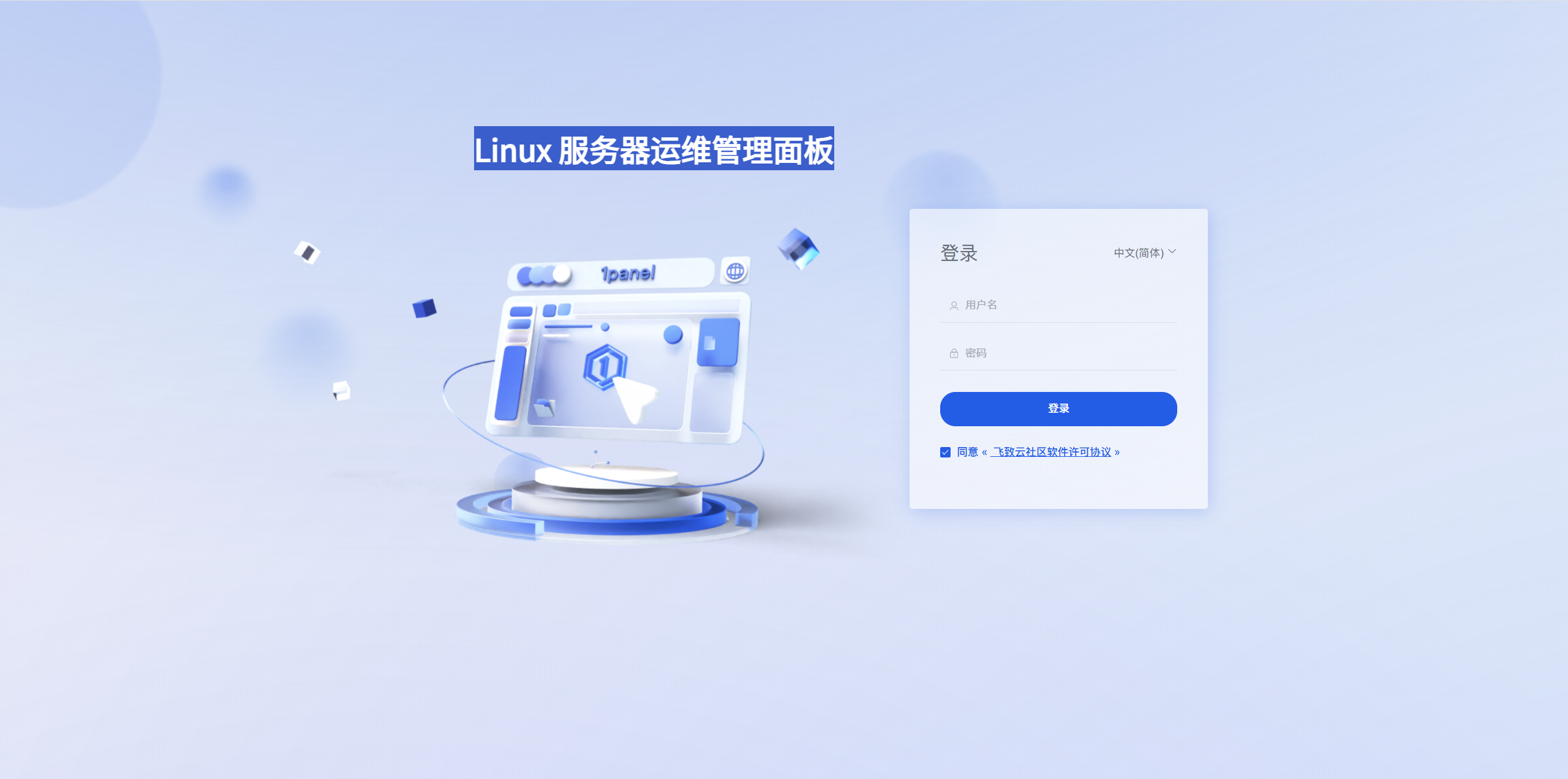 安装成功后,控制台会打印面板访问信息,可通过浏览器访问 1Panel: http://目标服务器 IP 地址:目标端口/安全入口