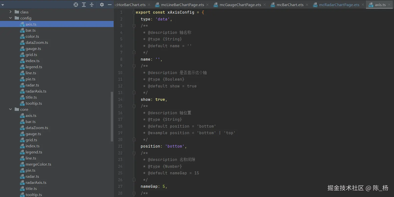 我这次把很多功能细化了一下,比如基础类里面就会把图例、轴线、提示层、线条、柱子等等都拆开,可以灵活调用,而且拓展性也很强。可以看一下具体代码: