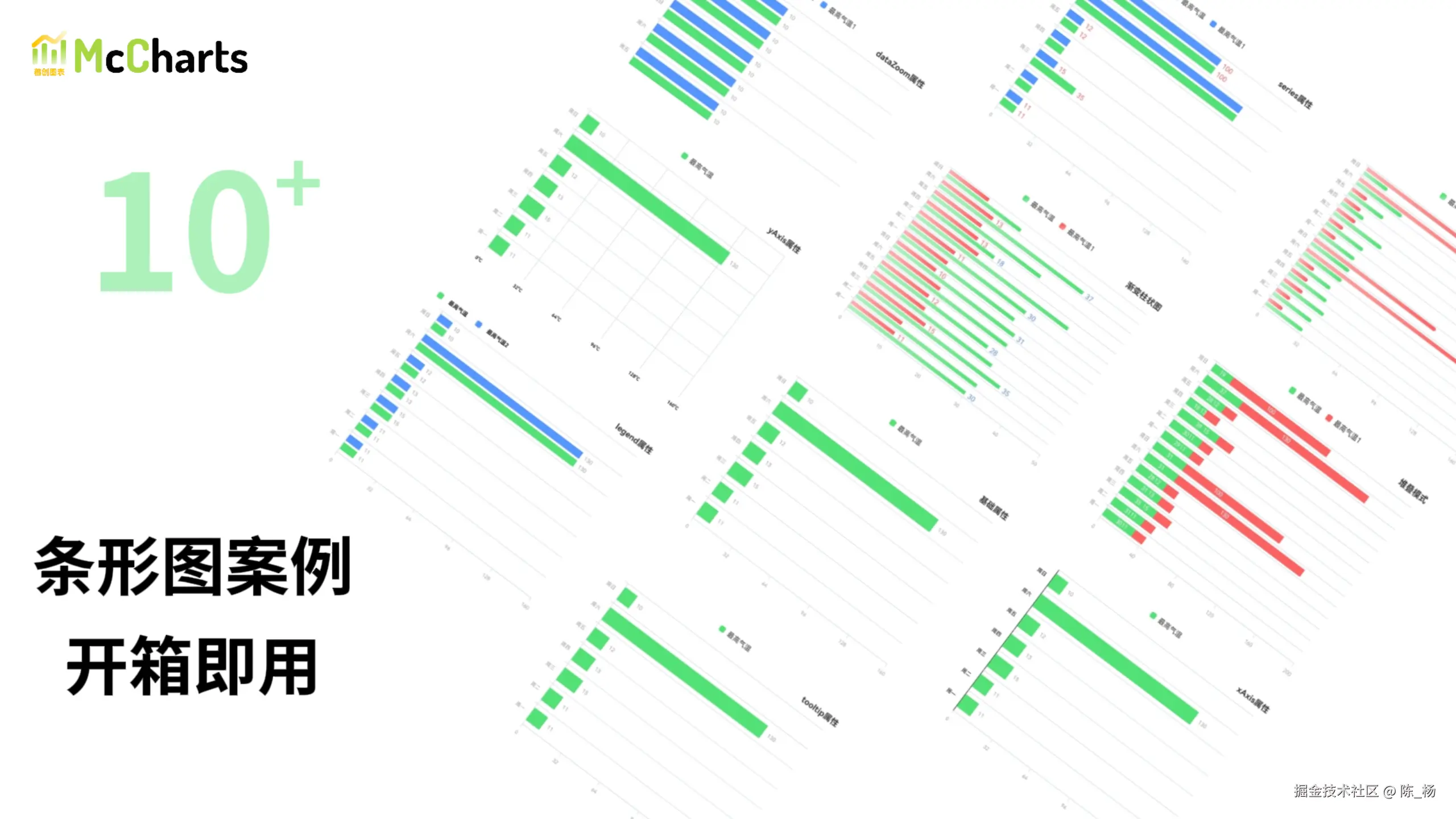 横向柱状图在此次版本中新增了圆角模式以及渐变模式等多种场景,案例目前也高达十几种