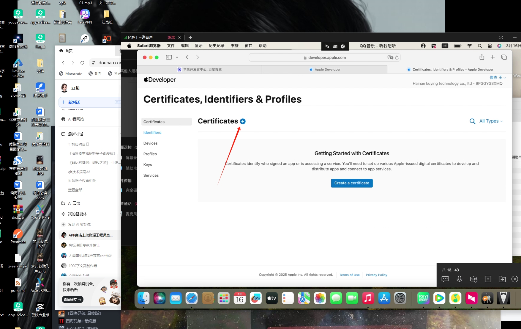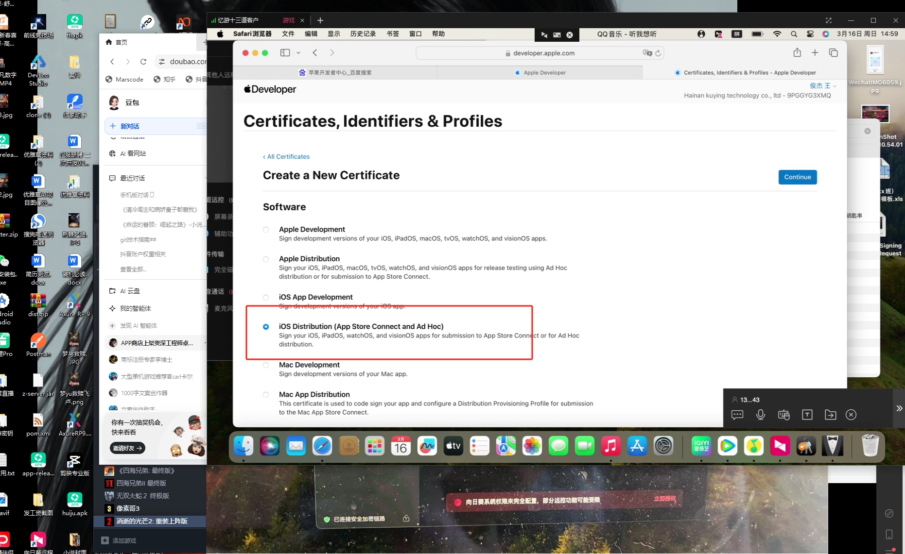 给客户做app上架,然后先发行一下证书,另外自己的mac电脑居然被老婆送人了 她觉得很卡,不知道那个很贵,1.4w。。。。只有今年努力加油买新的了,目前用客户的远程桌面,到mac发行。