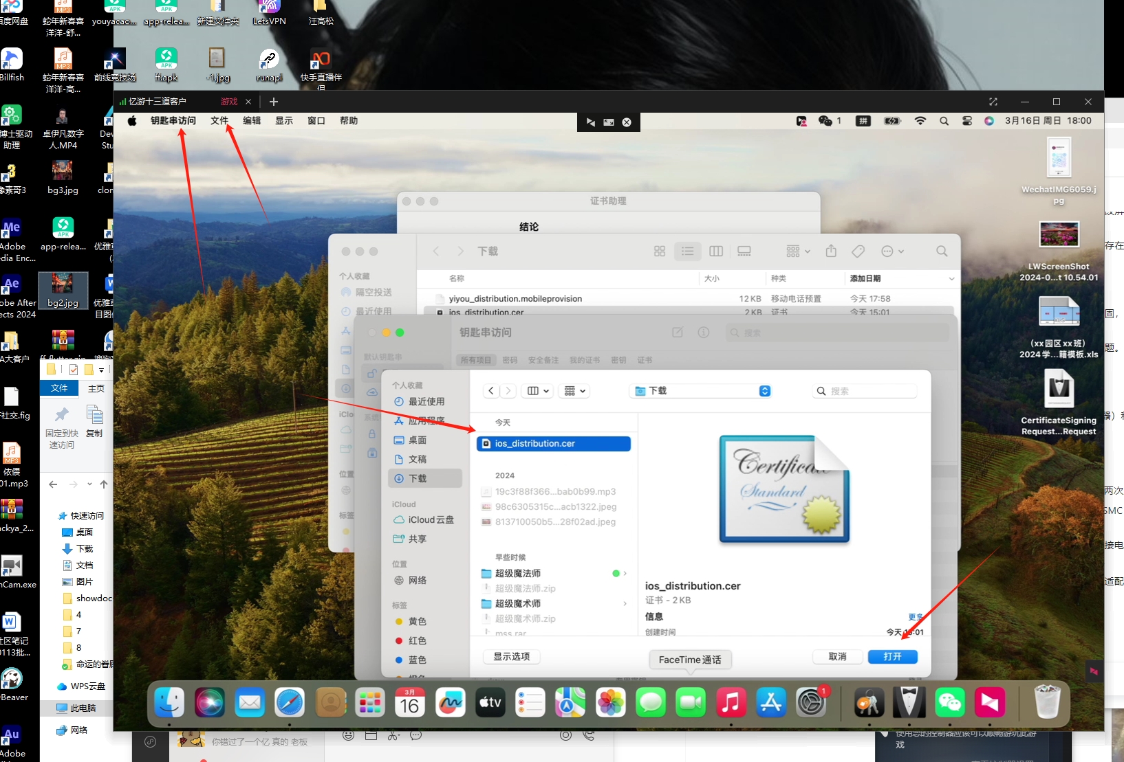 .cer证书文件,然后点击“打开”。此时证书会被导入到钥匙串中。