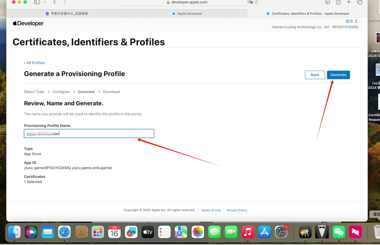 - 点击“Generate”生成App Store Distribution Profile描述文件。.mobileprovision,双击该文件即可自动安装到Xcode。将.cer证书文件转换为.p12文件的详细步骤: