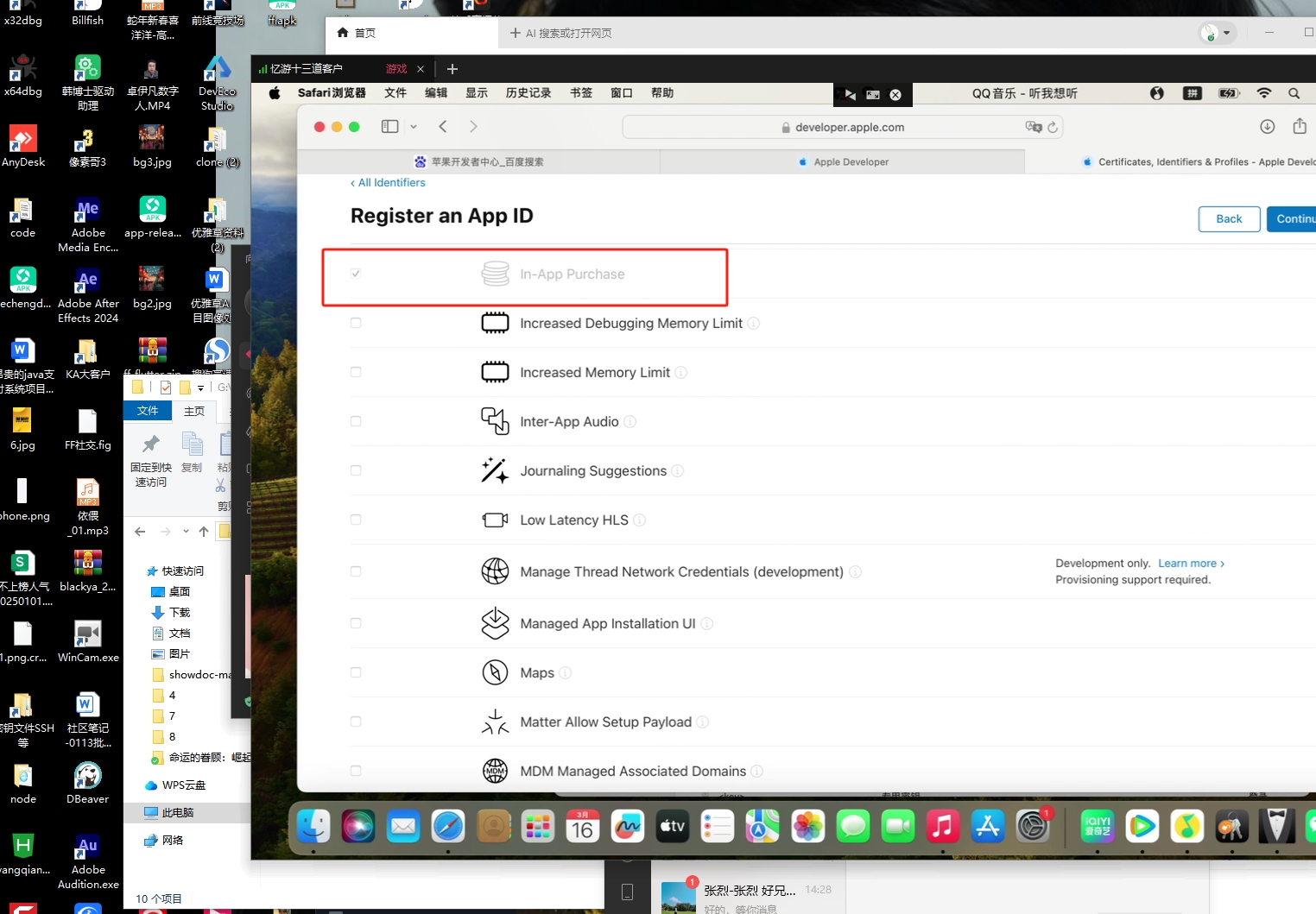 由于我们需要内购功能,苹果支付内购功能因此这里需要勾选能力,所以我们需要注意以下问题: