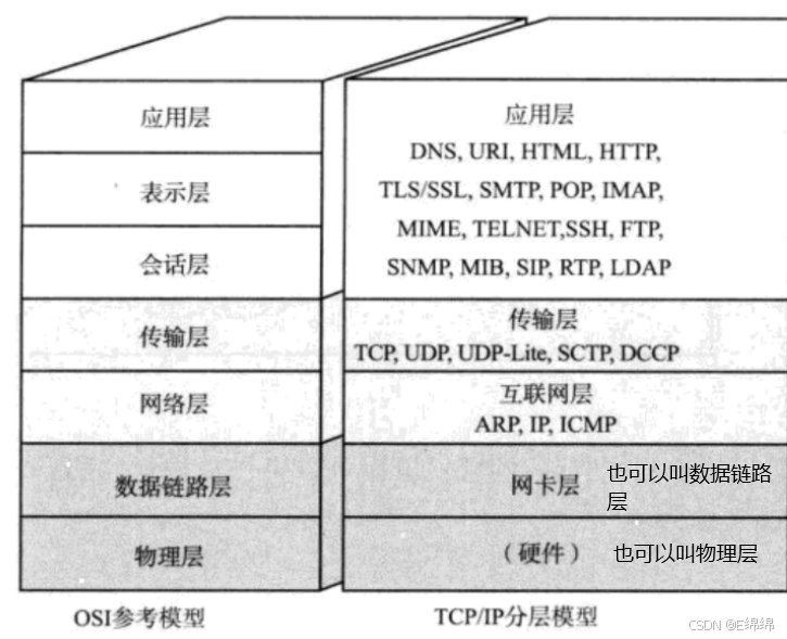物理层我们考虑的比较少。因此很多时候也可以称为 TCP/IP四层模型。