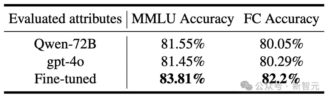 为了提升智能体的核心能力,可以针对性进行调优工作,如下表所示,在Function Call准召率上,通过增加通用基础能力数据,并合成DPO训练数据,在函数名匹配加全参数匹配评测的Function Call评测方法上,验证了Function Call核心能力提升的同时其他能力保持稳步提升,同时通过在MMLU(大规模多任务语言理解)评测集上看到通用能力不损失。