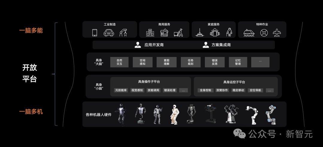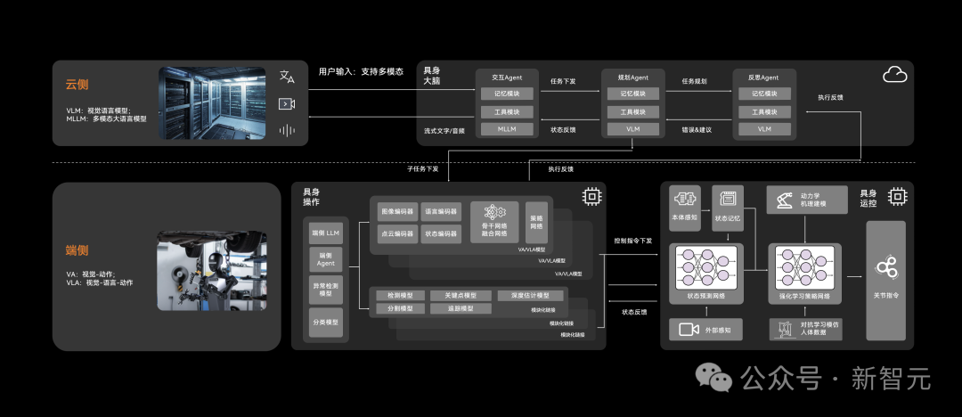 具身「大脑」具备自然交互、空间感知、意图理解、分层规划和错误反思等能力,具身「小脑」通过元技能库和动态控制实现动作执行,形成从具身「大脑」进行任务规划,再调用具身「小脑」技能库执行具体动作,并将执行反馈传递给具身「大脑」的完整任务闭环。