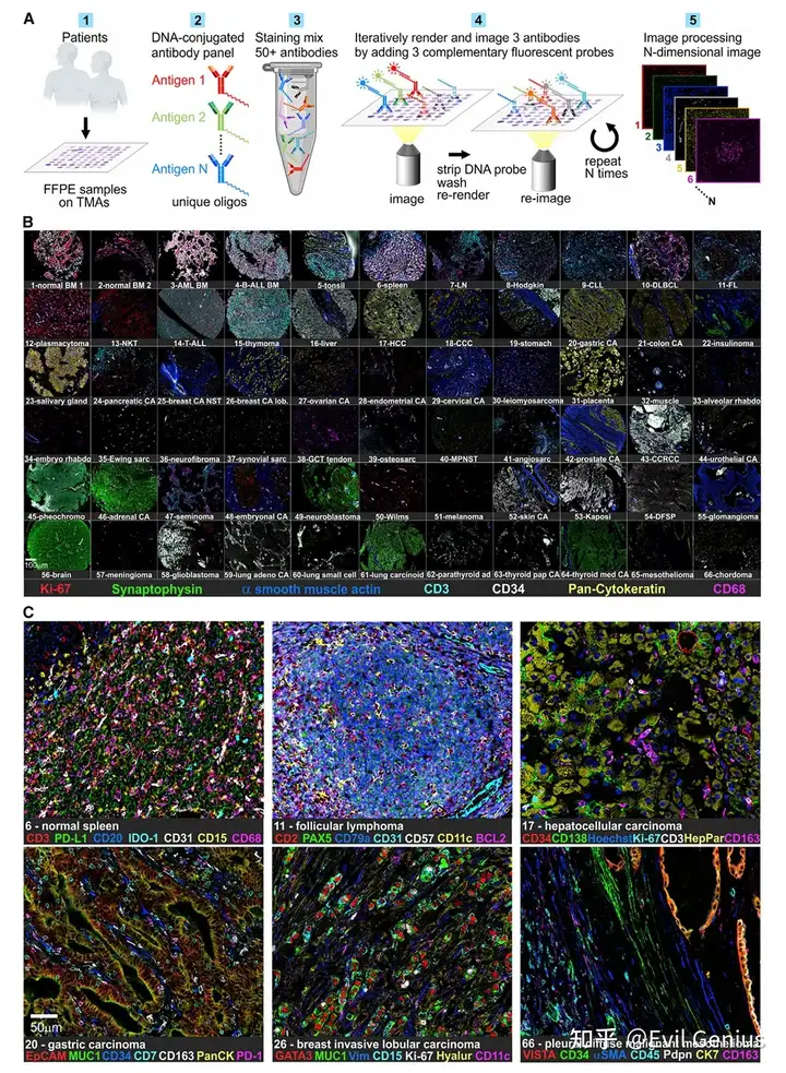 CODEX适用于临床相关组织中的高度多重单细胞标志物可视化、定量和生物标志物发现。