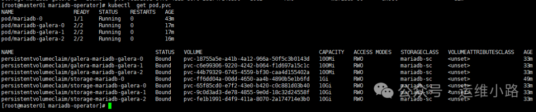 storageClassName: mariadb-sc #这行是添加的 #这里是集群版