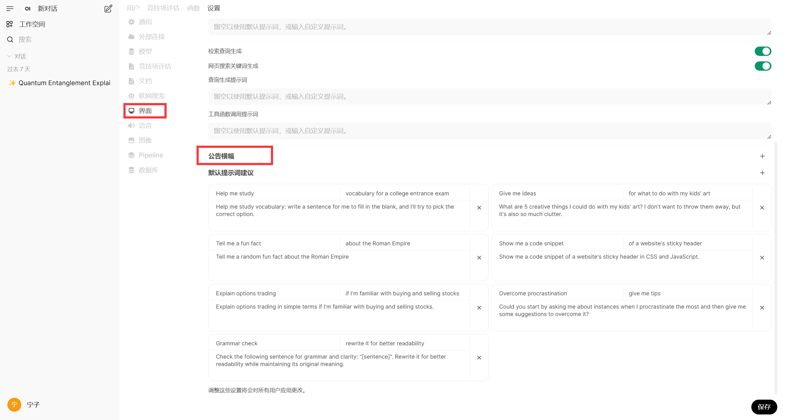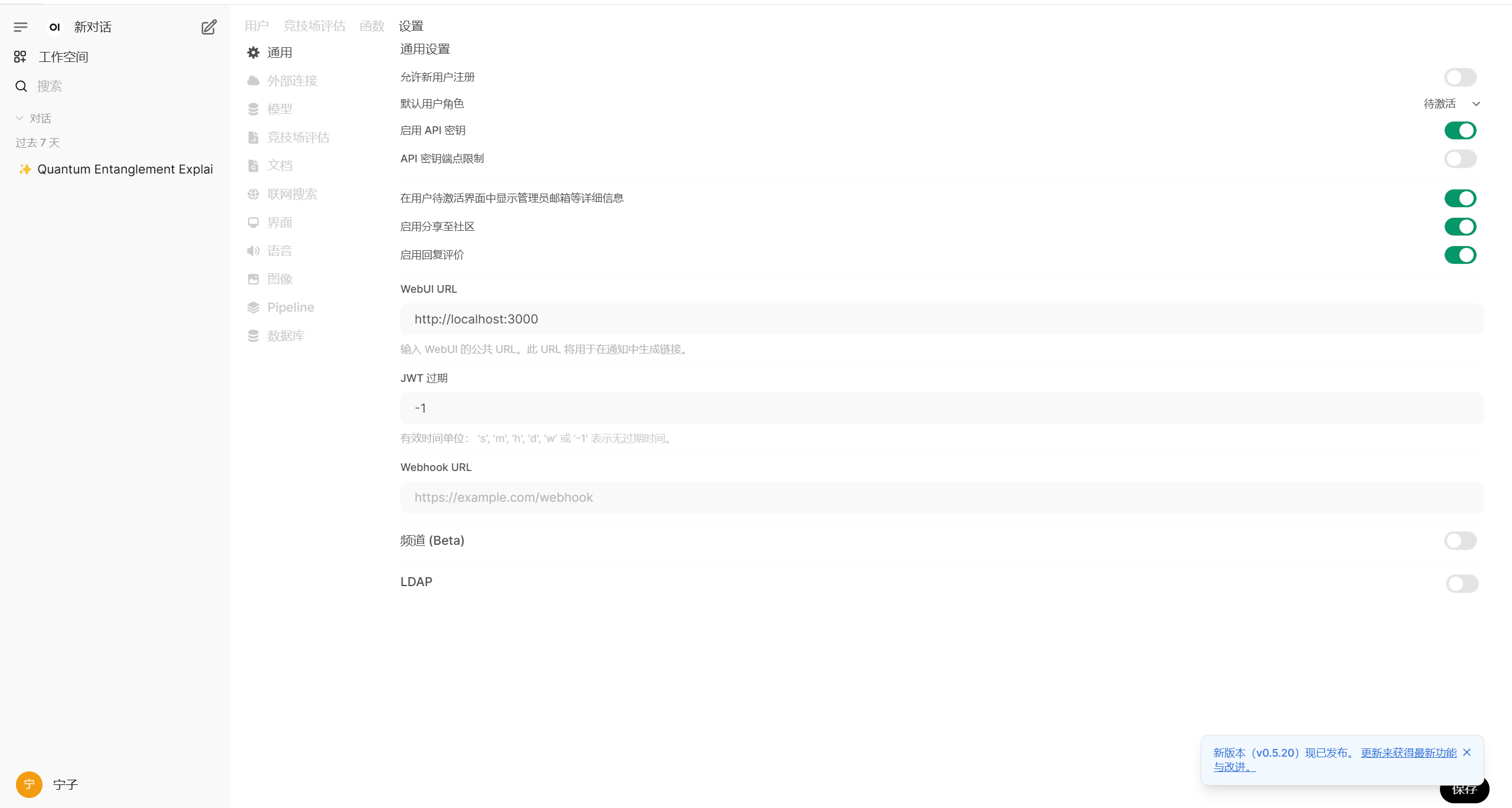 openwebui的后台也可设置,如主页横幅、允许新用户注册等。