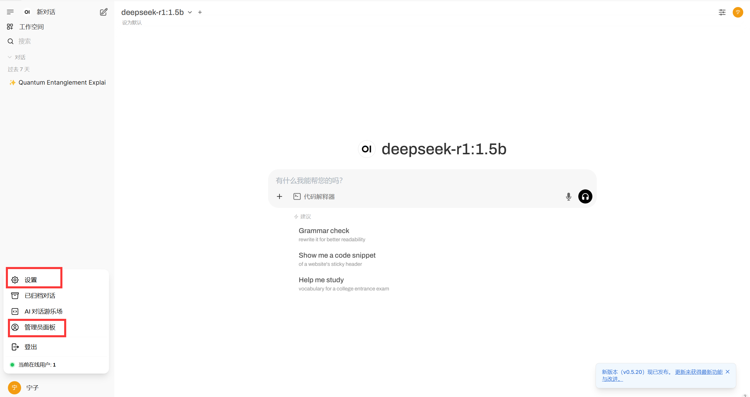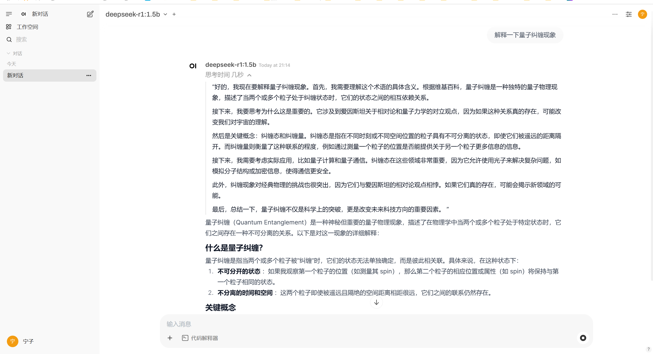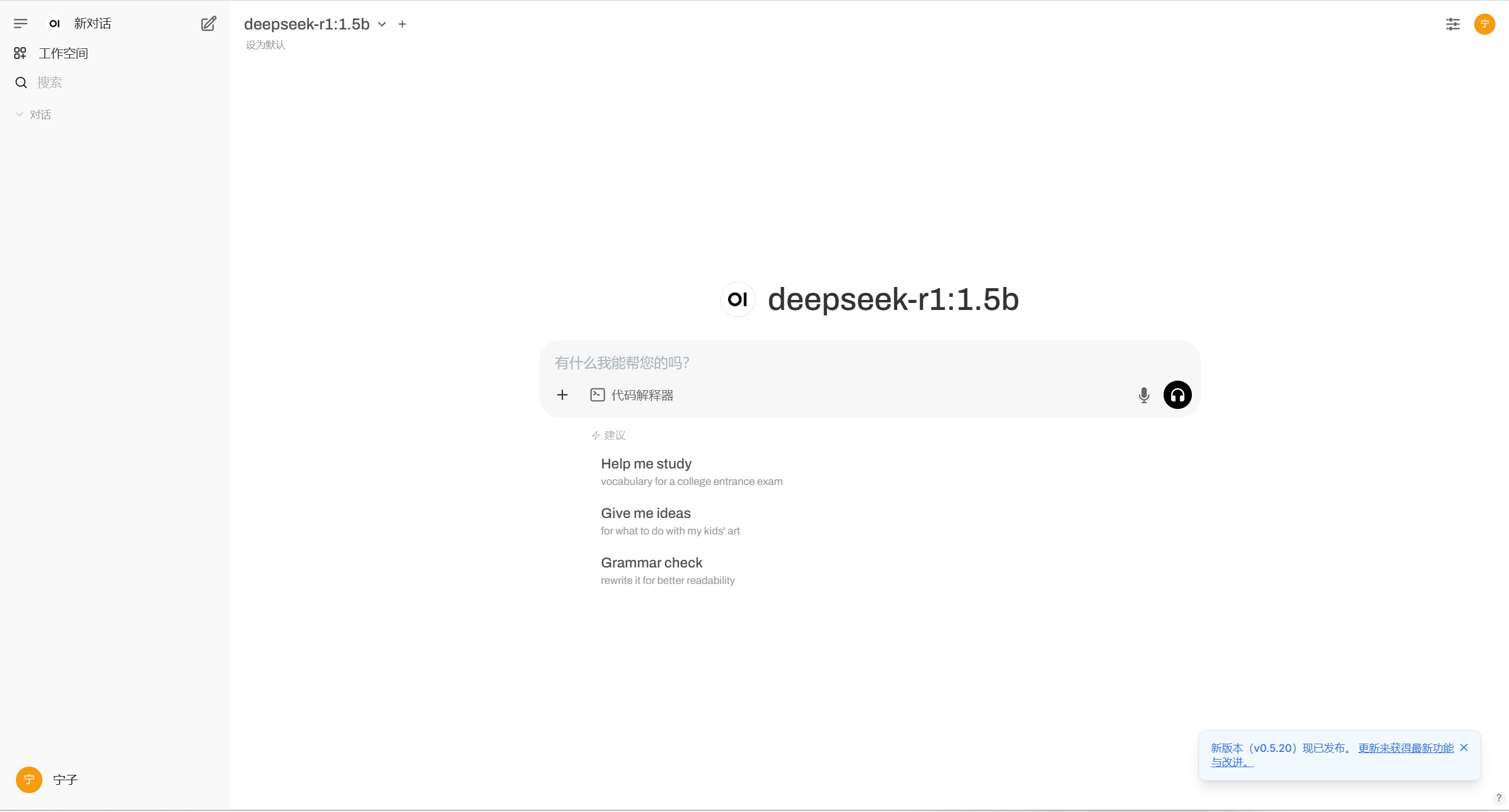 ollama run deepseek-r1:1.5b访问IP:3000,部署成功。