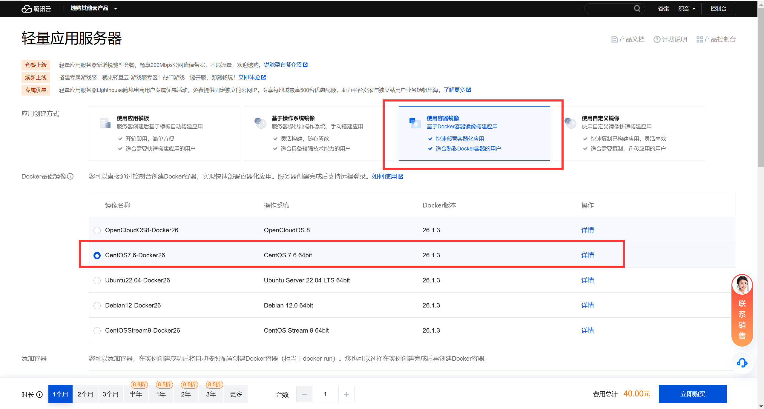 镜像选择:使用容器镜像 CentOS7.6-Docker26